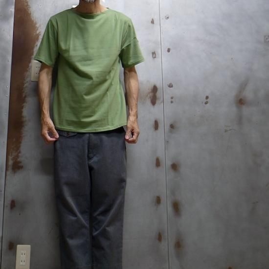 [サイズT4]を着用しますと少しリラックスなフィット感。洗って縮むと大き過ぎない程良いゆとり。しかしながら柔らかいドレープ感の出る素材感がピリアック素材の魅力なので、僕に程良いサイズ感はこちらですね。